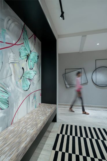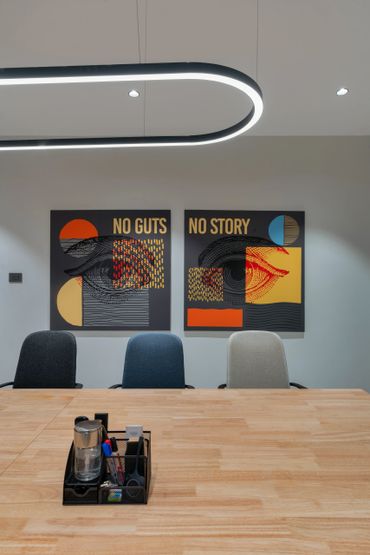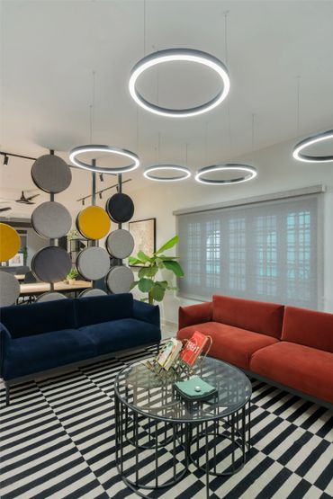 A quick revamp project where an old apartment got converted to a contemporary office space. The design focusses on creating an open layout to encourage interactions. The overall space is defined by a neutral colour palette with accents of colours. These colours are used intentionally to pop up the spaces and also represent the different brands of the company.