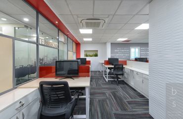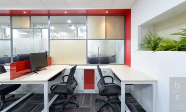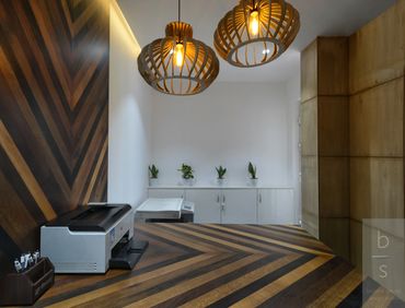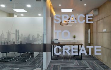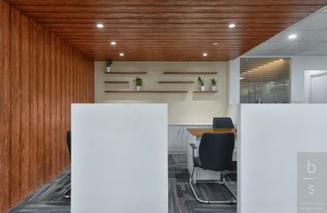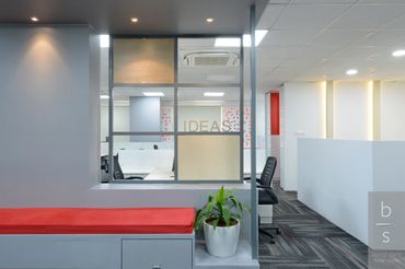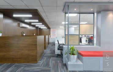 The approach to the marketing wing of this office was it to be more of a display area, with different zones within the office space, using color pops and breaks in ceiling. A workspace designed and executed entirely with different applications of cement boards - both enriching, and optimising their usage.